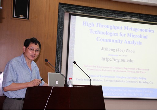 7月30日,應(yīng)我所農(nóng)田分子生態(tài)學(xué)科組邀請(qǐng),美籍華裔科學(xué)家,清華大學(xué)環(huán)境學(xué)院教授、國(guó)際環(huán)境微生物基因組學(xué)及生態(tài)學(xué)研究領(lǐng)域的領(lǐng)銜科學(xué)家周集中教授來(lái)我所進(jìn)行學(xué)術(shù)訪問(wèn)交流。并作了題為“High Throughout Metagenomics Technologies for Microbial Community Analysis”的學(xué)術(shù)報(bào)告。