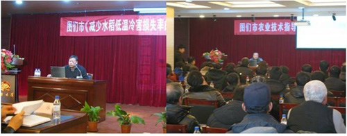 簽約儀式結(jié)束后,圖們市人民政府向我所的劉景雙研究員、齊曉寧研究員、楊福研究員、王洋研究員頒發(fā)了科技合作專家聘書。我所齊曉寧研究員和楊福研究員為圖們市農(nóng)業(yè)技術(shù)人員和廣大農(nóng)戶代表做了水稻新型種植技術(shù)和高產(chǎn)水稻新品種的專題報(bào)告,參會(huì)人員和農(nóng)戶代表仔細(xì)聽取了報(bào)告。