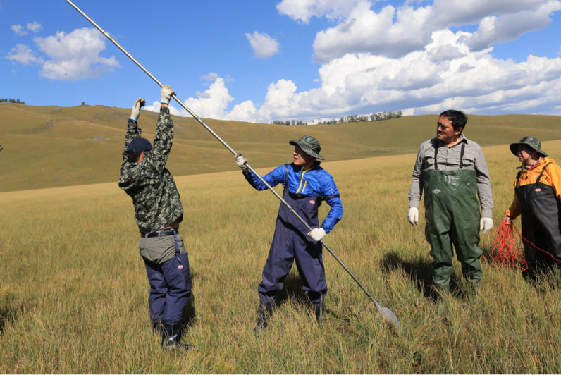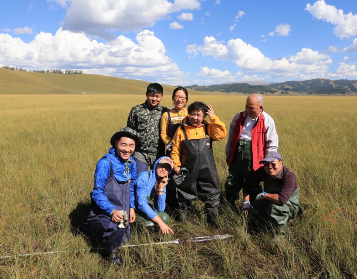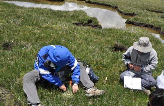 劉興土院士、馬學(xué)慧老師等在新疆泥炭地取樣