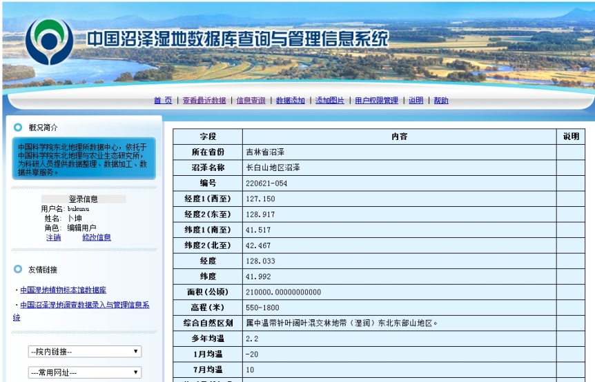 項(xiàng)目建立的沼澤濕地?cái)?shù)據(jù)管理信息平臺(tái)