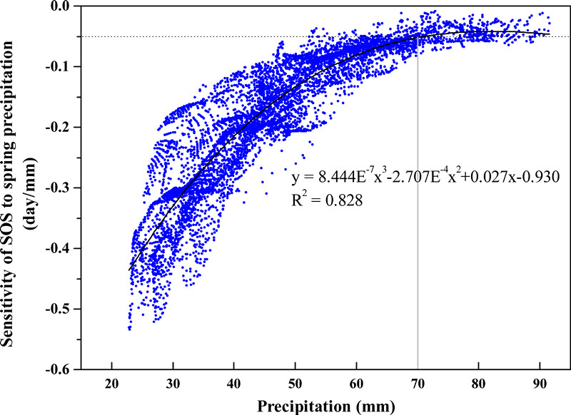 溫帶草原春季物候?qū)邓舾行匝亻L(zhǎng)時(shí)期春季平均降水量空間梯度變化圖