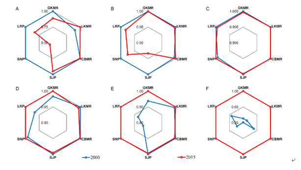 東北地理所地理景觀遙感和城市森林與濕地團(tuán)隊(duì)的研究人員利用Landsat系列衛(wèi)星遙感影像解譯獲取的2000和2015年土地覆蓋數(shù)據(jù),探討了國家實(shí)施一系列生態(tài)工程以來東北地區(qū)的土地覆蓋變化特征,進(jìn)而利用InVEST模型分析了東北地區(qū)生態(tài)系統(tǒng)服務(wù)的時(shí)空格局及其地理空間異質(zhì)性,深入討論了不同政策影響下的東北地區(qū)土地覆蓋變化特征,及其對生態(tài)系統(tǒng)服務(wù)變化的影響。