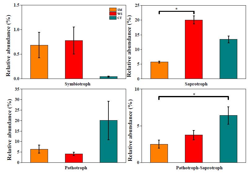 圖3 蟹洞不同部位沉積物真菌功能預(yù)測結(jié)果