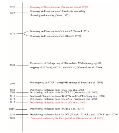 圖1.大豆光周期現(xiàn)象發(fā)現(xiàn)百年大事記