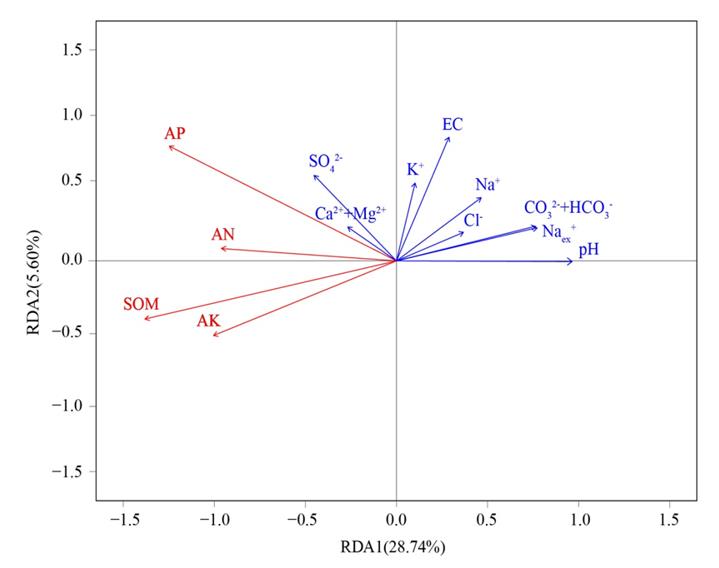 圖3 蘇打鹽堿土鹽分含量與養(yǎng)分含量的關(guān)系