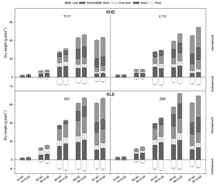 鮮食大豆俗稱“毛豆”,是一種于鮮莢期采收的特用大豆類型。鮮食大豆的營養(yǎng)價值豐富,是公認的營養(yǎng)保健食品。同時,鮮食大豆又是一種喜鉀作物,其產(chǎn)量和品質(zhì)的形成對鉀素的豐缺十分敏感。目前,面對黑土退化、地力下降等嚴峻形勢,充分發(fā)揮作物對鉀素的吸收利用效率是緩解土壤鉀素供應不足、實現(xiàn)資源高效持續(xù)利用的重要手段。為此,鉀高效型鮮食大豆的選育及其對鉀素的高效吸收利用機制解析尤為關鍵。
