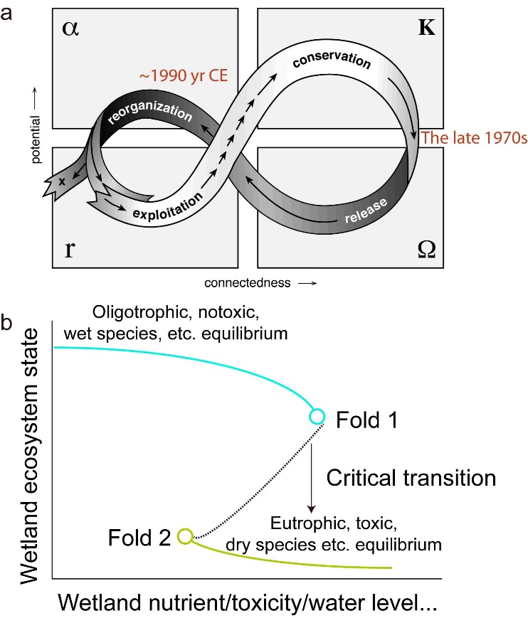 近幾十年來(lái),在氣候變化和人類(lèi)活動(dòng)的雙重干擾下,全球濕地的損失和功能退化速率遠(yuǎn)大于其它自然生態(tài)系統(tǒng),嚴(yán)重影響了區(qū)域生態(tài)環(huán)境和可持續(xù)發(fā)展。為服務(wù)國(guó)家生態(tài)文明建設(shè)需求,維持濕地可持續(xù)發(fā)展,急需開(kāi)展?jié)竦乇Wo(hù)和恢復(fù)的基礎(chǔ)理論及關(guān)鍵技術(shù)研究工作。從濕地生態(tài)恢復(fù)目標(biāo)的制定方法上看,由于缺乏對(duì)濕地彈性和適應(yīng)性循環(huán)的深入了解,目前常用的歷史記錄法、參考點(diǎn)法等通常把系統(tǒng)受到擾動(dòng)之前的生態(tài)特征設(shè)定為恢復(fù)參考目標(biāo),導(dǎo)致恢復(fù)所需成本過(guò)高、周期過(guò)長(zhǎng)。