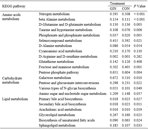 表1 Haemonchus contortus感染后宿主羔羊胃腸道微生物KEGG通路的改變