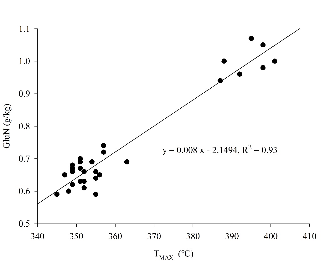 圖2 真菌殘?bào)wGluN與TMAX線性回歸關(guān)系