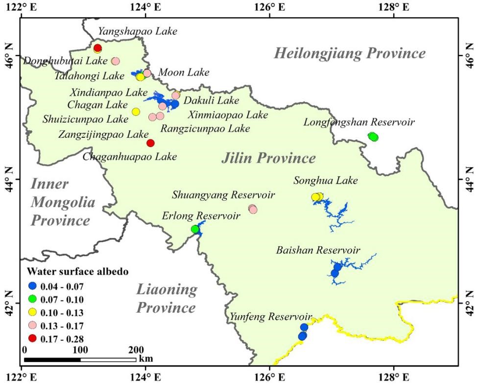 圖1 采樣點(diǎn)湖泊反照率空間分布