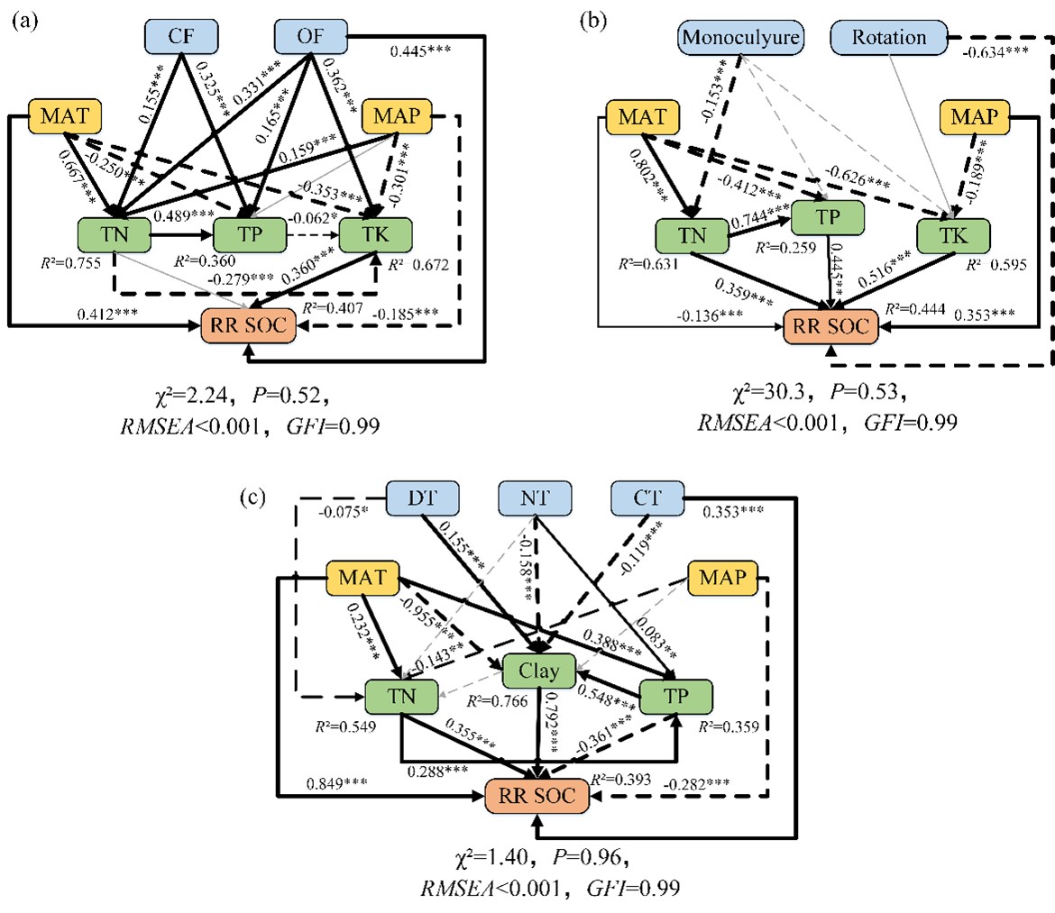 圖2. 土壤管理類型對有機(jī)碳含量影響的SEM分析
