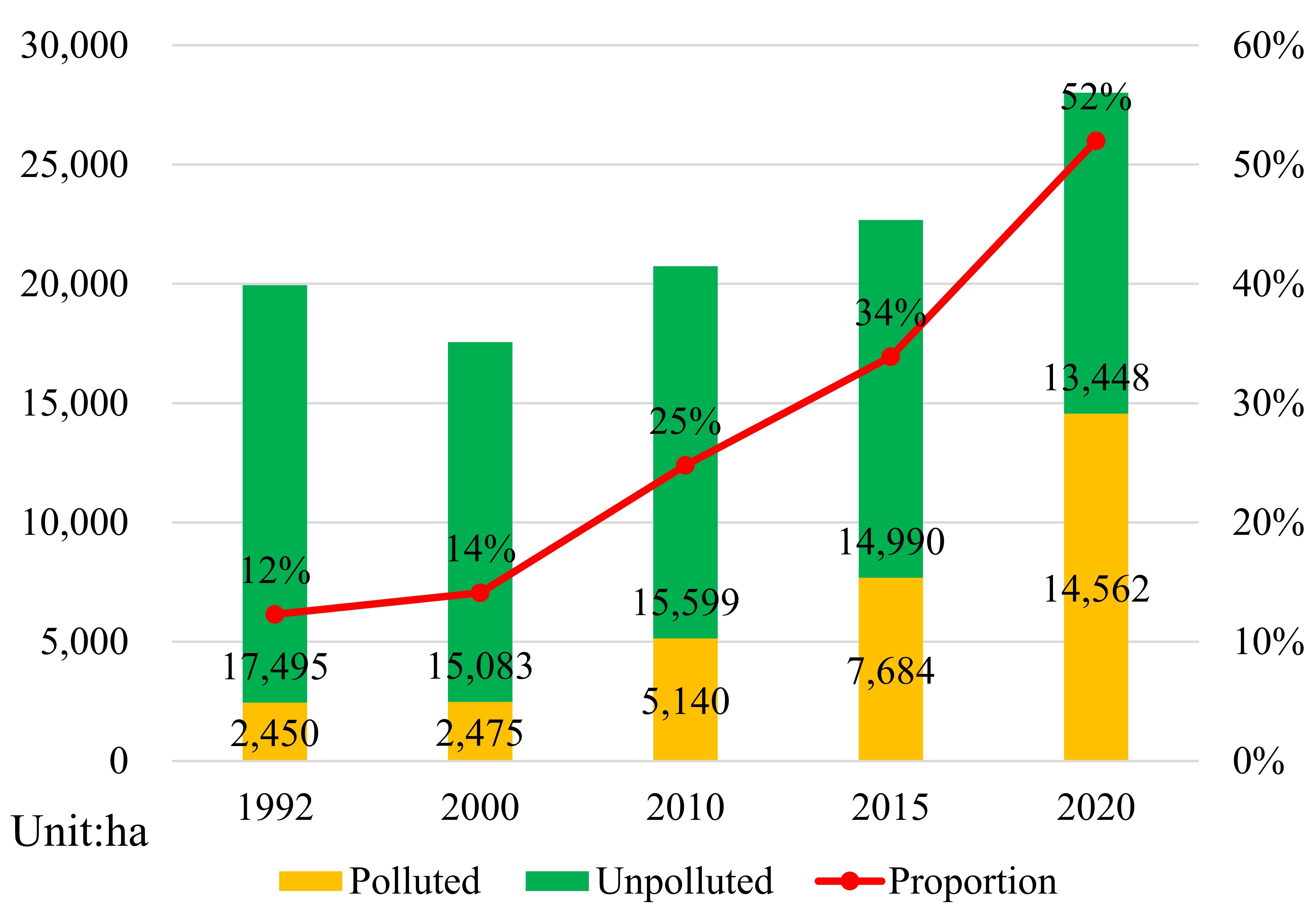 圖1 1992-2002年中國(guó)紅樹林光污染統(tǒng)計(jì)