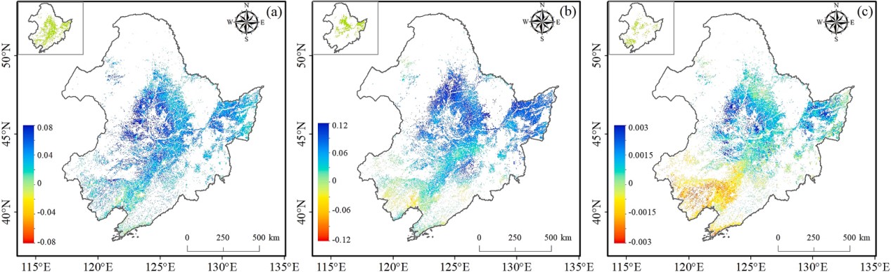 區(qū)域可用水資源與農(nóng)業(yè)生產(chǎn)之間的矛盾一直是制約農(nóng)業(yè)可持續(xù)發(fā)展的主要因素。東北地區(qū)作為我國最大的農(nóng)業(yè)區(qū),在維護國家糧食安全方面發(fā)揮著關(guān)鍵作用。自21世紀以來,東北地區(qū)呈現(xiàn)出前所未有的作物變綠趨勢,然而,作物變綠通過改變水文循環(huán)對區(qū)域水資源的影響尚不明確。本研究以東北地區(qū)為研究區(qū),在前期研究“作物變綠對地表溫度的不對稱影響及其生物地球物理機制 (Yu et al., AFM, 2022)”的基礎(chǔ)上,進一步探討了作物變綠對區(qū)域水循環(huán)的影響及機制。首先利用時間序列衛(wèi)星觀測記錄分析了水循環(huán)關(guān)鍵要素包括蒸散、降水和土壤水分的時空變化特征;進而應(yīng)用機器學習方法探究了土壤水分對葉面積指數(shù)的敏感性,并應(yīng)用可解釋深度學習方法進行土壤濕度變化的貢獻歸因;最后采用區(qū)域氣候模式WRF情景模擬研究作物變化對東北地區(qū)區(qū)域水分平衡的影響及物理機制。
