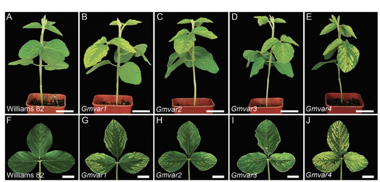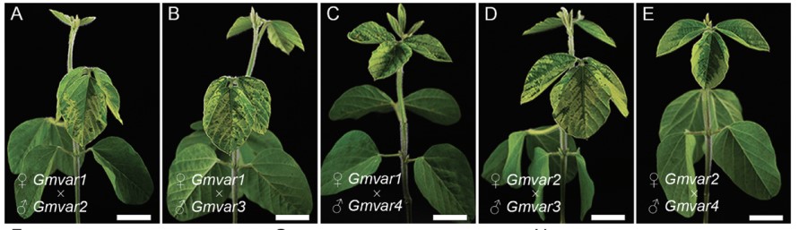 植物的同一片葉子上存在黃色和綠色斑塊稱為黃綠雜色葉。這種葉片的表型在觀賞植物中被認(rèn)為是一種優(yōu)異的性狀,增加植物的觀賞價值。但在作物中,葉片黃綠雜色被認(rèn)為是一種負(fù)面的性狀,因為它會影響光合作用和作物生長,降低生產(chǎn)力和產(chǎn)量。葉肉組織由柵欄組織和海綿組織組成,包裹著負(fù)責(zé)輸送礦物質(zhì)、有機(jī)養(yǎng)料和水分的維管系統(tǒng),葉綠體是植物光合作用的主要場所。早期的研究證明,黃綠雜色葉片中黃色部分的葉肉細(xì)胞中的葉綠體結(jié)構(gòu)被破壞。但直到最近,調(diào)控大豆葉片黃綠雜色表型的分子生物學(xué)機(jī)制在很大程度上仍未被解析。