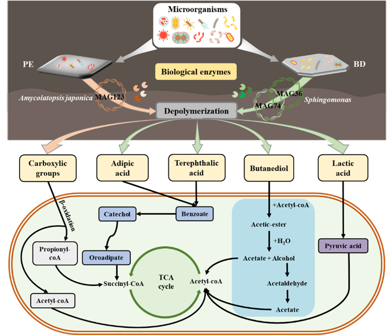 圖3 傳統(tǒng)和生物可降解微塑在土壤中的微生物潛在分解行為