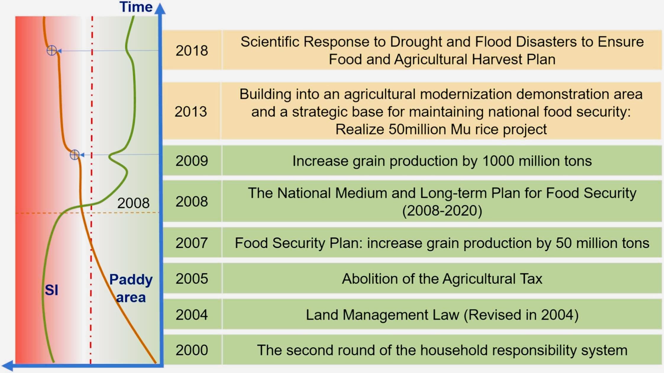 圖3. 政策驅(qū)動下三江平原水田面積和地下水可持續(xù)性變化