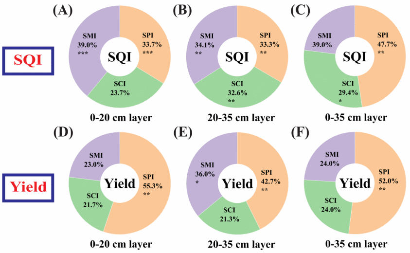 圖3. SPI、SCI和SMI對SQI和玉米產(chǎn)量的貢獻(xiàn)