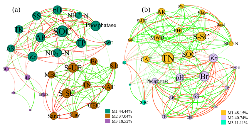 Ming Gao,Wei Hu,Meng Li*,Shuli Wang,Lin Chu. Network analysis was effective in establishing the soil quality index and differentiated among changes in land-use type. Soil & Tillage Research,2025,246,106352.