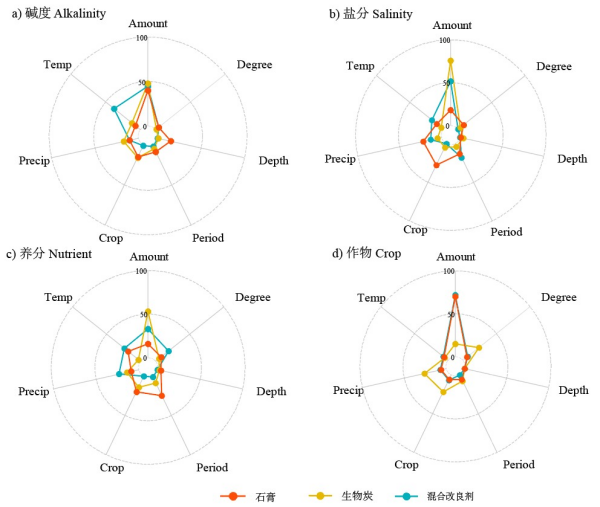 圖3不同改良劑應(yīng)用效果的影響因素相對重要性解析