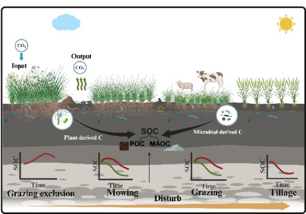 草地生態(tài)系統(tǒng)是陸地碳循環(huán)的重要組成部分,其土壤中儲存著全球草地碳匯90%以上的碳量。在全球變化背景下,人類活動導致的土地利用變化已被證實是驅(qū)動土壤有機碳(SOC)變化的關(guān)鍵因素,貢獻了約25%的全球二氧化碳排放量。然而,通過科學的管理措施,可以有效控制這種碳損失。不同草地利用方式對土壤碳庫的影響途徑復雜多樣。為最大化提升草地生態(tài)系統(tǒng)的碳封存潛力,亟需深化對不同利用模式下草地土壤碳庫動態(tài)的研究。