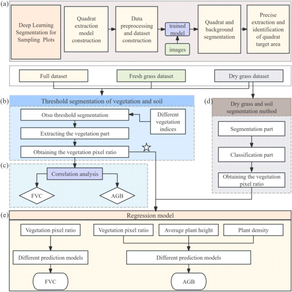 準確、高效地監(jiān)測草地覆蓋度(FVC)和地上生物量(AGB)兩項核心生態(tài)指標,是科學診斷草甸草原退化程度、評估生態(tài)系統(tǒng)恢復力、制定精準恢復與管理策略的關鍵基礎。傳統(tǒng)依賴人工野外調(diào)查的方法周期長、覆蓋范圍有限。近年來,“天空地一體化”監(jiān)測體系的發(fā)展顯著提升了草地退化監(jiān)測的速度與準確性。然而,發(fā)展高效、精準、低成本的無損監(jiān)測技術(shù)仍是提升生態(tài)系統(tǒng)管理科學化水平的迫切需求。