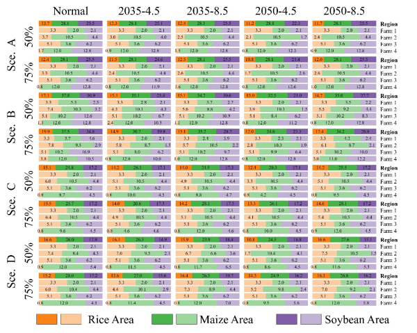 圖 3.不同情景下農(nóng)田利用的最佳結果