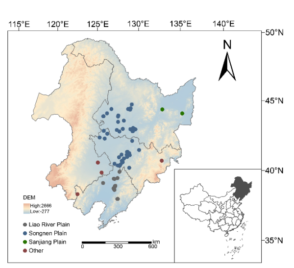 東北黑土區(qū)是全球典型的黑土分布區(qū)之一,也是我國最重要的糧食生產(chǎn)基地。該區(qū)域生產(chǎn)了全國約36%的玉米和50%的大豆,是國家糧食安全的核心保障。然而,長期高強(qiáng)度利用與氣候變化疊加,導(dǎo)致黑土地土壤有機(jī)質(zhì)下降、結(jié)構(gòu)退化等問題日益突出。與此同時(shí),不同地區(qū)在氣候、土壤質(zhì)地和地形條件上存在明顯差異,使得相同的耕作或施肥措施在區(qū)域間表現(xiàn)差異顯著。這種異質(zhì)性不僅增加了農(nóng)業(yè)管理的不確定性,也制約了管理模式的推廣和應(yīng)用。在此背景下,明確不同土壤管理措施在東北地區(qū)的綜合效應(yīng)及其驅(qū)動(dòng)機(jī)制,對于構(gòu)建區(qū)域適宜的農(nóng)業(yè)管理體系、提升作物產(chǎn)量和土壤質(zhì)量、實(shí)現(xiàn)農(nóng)業(yè)可持續(xù)發(fā)展具有重要意義。