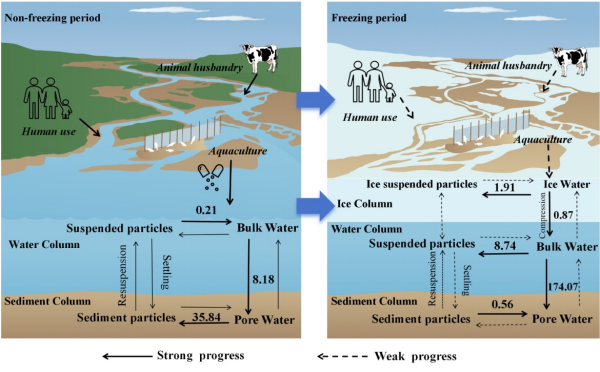 圖2 抗生素在非冰封期和冰封期多介質(zhì)的遷移與運(yùn)輸