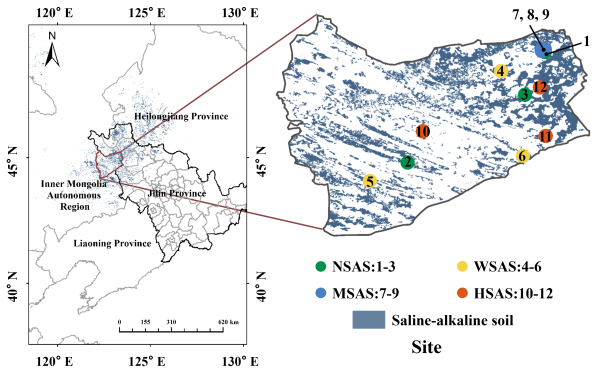 圖1?吉林省白城市通榆縣鹽堿地采樣點(diǎn)分布圖