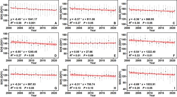 圖1中國濕地春季物候變化的時(shí)間趨勢