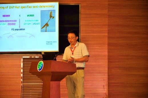 來自澳大利亞塔斯馬尼亞大學(xué)的Jim Weller教授、美國普渡大學(xué)的馬漸新教授、愛荷華州立大學(xué)的Madan K. Bhattacharyya教授、肯塔基大學(xué)的袁凌教授、愛荷華州立大學(xué)的余建明教授和董良教授、西蒙弗雷澤大學(xué)的陳楠生教授、中國科技大學(xué)的趙忠教授、山東大學(xué)向鳳寧教授、中國農(nóng)業(yè)科學(xué)院傅永福教授、東北農(nóng)業(yè)大學(xué)安海龍教授、江蘇大學(xué)譚小力教授,華東師范大學(xué)晏軍教授以及中國科學(xué)院上海生命科學(xué)院何玉科研究員、西雙版納植物園的陳江華研究員、東北地理與農(nóng)業(yè)生態(tài)研究所的袁曉輝、閻哲研究員等國內(nèi)外專家和我所青年學(xué)者做了學(xué)術(shù)報(bào)告。