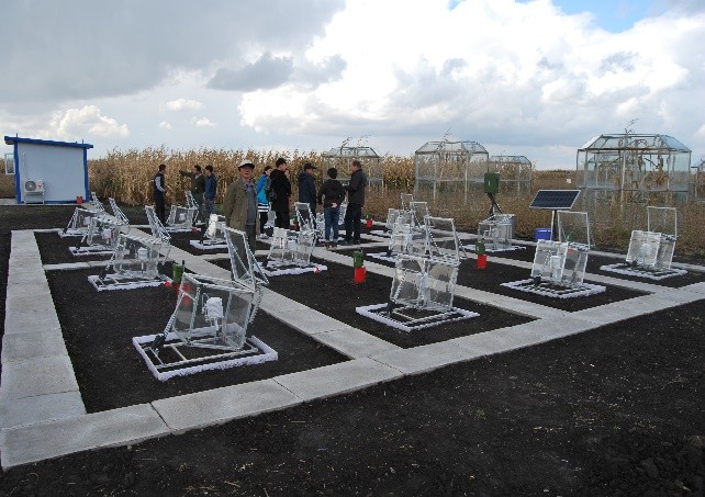 會議期間,與會專家前往海倫站參觀了系列長期定位實驗平臺,并考察了新建的“黑土農(nóng)田土壤養(yǎng)分循環(huán)實驗平臺”。該研究平臺是海倫站建站以來,田間實驗平臺中科技含量最高,經(jīng)費投入最多的實驗平臺,實現(xiàn)了田間原位、同步和實時觀測土壤溫室氣體通量及其穩(wěn)定同位素豐度的動態(tài)變化。在現(xiàn)場,專家從實驗處理的設(shè)置、儀器測量的準(zhǔn)確性以及觀測系統(tǒng)的穩(wěn)定性等方面提出了建設(shè)性意見和建議,為后續(xù)研究平臺的順利運行提供了保障。