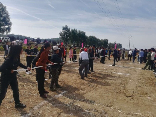 歡快喜慶的大秧歌舞蹈揭開了活動的序幕,該舞蹈通過藝術(shù)的形式展現(xiàn)了當(dāng)?shù)貏趧由顑?nèi)容,呈現(xiàn)農(nóng)民慶祝豐收的愿景并繼承發(fā)揚遼河源鎮(zhèn)本土的民俗文化。接下來,掰苞米、摘豆莢、拔河等各類農(nóng)事競賽活動陸續(xù)舉行,充分展示遼河源鎮(zhèn)豐富的農(nóng)耕文化,體現(xiàn)農(nóng)業(yè)者的勞動之美。村民在體味農(nóng)事競賽活動帶來的快樂的同時,對東遼基地展示的優(yōu)質(zhì)作物給予了高度評價。