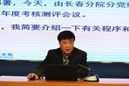 長春分院組織人事處處長于學鋒現(xiàn)場組織了對所領導班子和班子成員的考核測評。他詳細介紹了考核程序、考核內(nèi)容,對如何評議進行了說明。