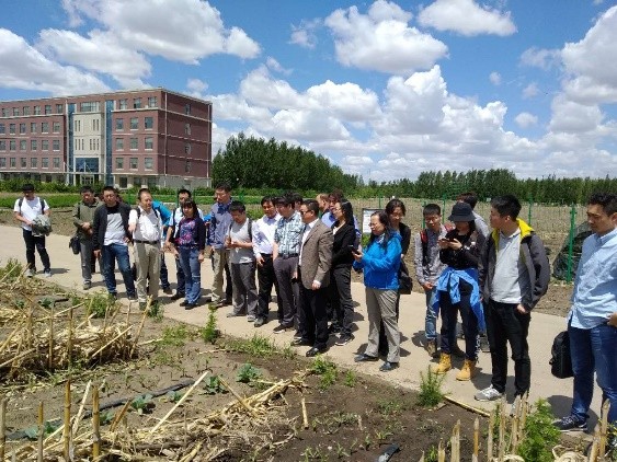 5月29日-30日,在松嫩平原西部鹽堿濕地生態(tài)研究站,李曉宇副研究員簡(jiǎn)述了臺(tái)站已有的“稻-葦-魚-蟹”復(fù)合生態(tài)工程模式及成果,帶領(lǐng)考察組考察了建設(shè)完成的500畝示范區(qū),匯報(bào)了葦基食用菌栽培技術(shù)生產(chǎn)轉(zhuǎn)化及葦基菌糠肥田技術(shù)研究進(jìn)展,并指出課題希望通過完善濕地農(nóng)業(yè)復(fù)合生態(tài)工程模式及生態(tài)產(chǎn)業(yè)鏈條,推動(dòng)鹽堿沼澤濕地生態(tài)功能提升和綠色產(chǎn)業(yè)發(fā)展。在大安堿地生態(tài)試驗(yàn)站,楊昊諭博士全面介紹了大安堿地生態(tài)試驗(yàn)站開展的鹽堿地治理的主要技術(shù)、方法及進(jìn)展,并詳細(xì)介紹了鹽堿地頂級(jí)植被羊草種群快速克隆繁殖技術(shù)和外源激素引發(fā)提升羊草生產(chǎn)力技術(shù)的研究進(jìn)展,指出通過羊草擴(kuò)繁技術(shù)集成及推廣,實(shí)現(xiàn)鹽堿地羊草植被的恢復(fù)。黃迎新研究員系統(tǒng)介紹了松嫩鹽堿化草地形成原因、現(xiàn)狀,以及鹽堿化草地恢復(fù)方法的可行性以及未來的研究方向,指出“東北農(nóng)牧交錯(cuò)帶生態(tài)功能提升與綠色發(fā)展示范”課題希望通過脆弱生態(tài)系統(tǒng)的生態(tài)功能恢復(fù)及提升,發(fā)展綠色產(chǎn)業(yè),最終實(shí)現(xiàn)生態(tài)效益、經(jīng)濟(jì)效益、社會(huì)效益的有機(jī)結(jié)合,為整個(gè)東北農(nóng)牧交錯(cuò)帶綠色可持續(xù)發(fā)展提供必要的技術(shù)支撐,助力精準(zhǔn)扶貧,提出可推廣、可復(fù)制的生態(tài)產(chǎn)業(yè)發(fā)展模式。