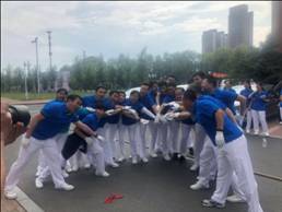 隨后,我所隊員還參加 “齊頭并進”多人多足比賽, “凝心聚力”拔河比賽和 “同心協(xié)力”呼啦圈過山車。全體隊員共同配合,齊心協(xié)力,單項趣味比賽均獲得總分第二的好成績,賽后歡聲笑語此起彼伏。