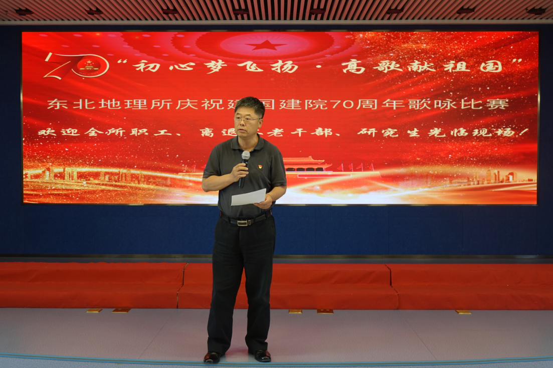 2019年是中華人民共和國成立70周年,也是中國科學(xué)院建院70周年。9月29日下午,中科院東北地理所“初心夢(mèng)飛揚(yáng) 高歌獻(xiàn)祖國”慶祝建國建院70周年歌詠比賽在綜合樓六樓多功能廳隆重舉行。所黨委書記蘇陽、副所長張平宇、工會(huì)主席邵慶春及工會(huì)常設(shè)主席團(tuán)成員作為評(píng)委出席比賽。