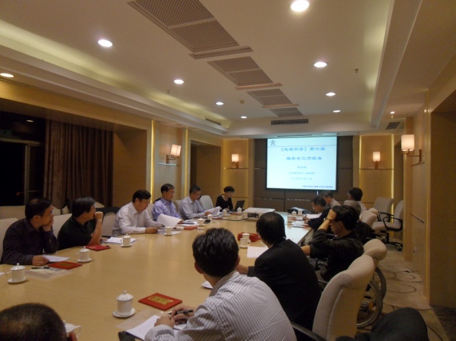 2014年10月24日,在中國地理學會2014年學術(shù)年會在成都召開之際,舉行了《地理科學》第六屆編委會、《Chinese Geographical Science》第五屆編委會工作會議。《地理科學》主編陸大道院士、《Chinese Geographical Science》主編傅伯杰院士及兩刊新一屆編委共30余人參加了會議。