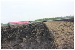 海倫市是我國著名的產(chǎn)糧大縣,但是今年春季持續(xù)低溫多雨,導(dǎo)致截止5月25日還有70%以上地塊沒有進(jìn)行播種,其中有50%以上的地塊沒有進(jìn)行秋季整地。針對今年春季低溫、多雨、低洼地塊播種困難,秸稈還田,黑土肥力退化,耕層變淺和犁底層變厚等問題,海倫綜合試驗站與海倫市相關(guān)部門配合,采用秸稈間隔深埋還田技術(shù),利用七鏵犁(液壓翻轉(zhuǎn)),將秸稈翻扣在土壤35 cm深處,在打破土壤犁底層,增加土壤耕層厚度,提高土壤肥力的同時,有利于土壤透水透氣快速升溫,為創(chuàng)造一個良好的作物播種和出苗條件提供基礎(chǔ),為保障今年的糧食產(chǎn)量提供必要條件。