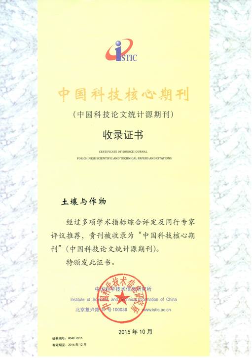 《土壤與作物》被收錄為中國科技核心期刊