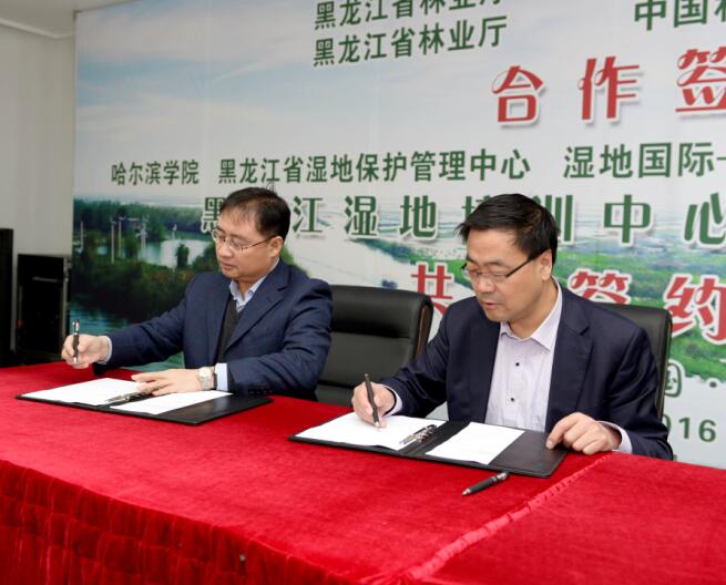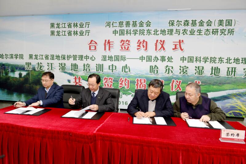 2016年11月22日上午,中國(guó)科學(xué)院東北地理與農(nóng)業(yè)生態(tài)研究所與黑龍江省林業(yè)廳在哈爾濱市簽署了全面戰(zhàn)略合作協(xié)議,在此合作框架下,東北地理所與黑龍江省濕地保護(hù)管理中心、濕地國(guó)際-中國(guó)辦事處及哈爾濱學(xué)院簽署“關(guān)于支持共建‘黑龍江濕地培訓(xùn)中心’、‘哈爾濱濕地研究院’合作框架協(xié)議”。我所張平宇副所長(zhǎng)出席簽字儀式,并與黑龍江省林業(yè)廳廳長(zhǎng)楊國(guó)亭、哈爾濱市政府副秘書長(zhǎng)王曉春等領(lǐng)導(dǎo)共同為“黑龍江濕地培訓(xùn)中心”、“哈爾濱濕地研究院”揭牌。我所呂憲國(guó)研究員被聘為哈爾濱濕地研究院學(xué)術(shù)委員會(huì)主任委員,并在簽約儀式上宣讀了哈爾濱濕地研究院組織機(jī)構(gòu)及學(xué)術(shù)委員會(huì)名單。參加簽約儀式的還有我所所長(zhǎng)助理姜明研究員、哈區(qū)農(nóng)業(yè)中心副主任宋鳳斌研究員、趙恒田研究員、王強(qiáng)副研究員等。