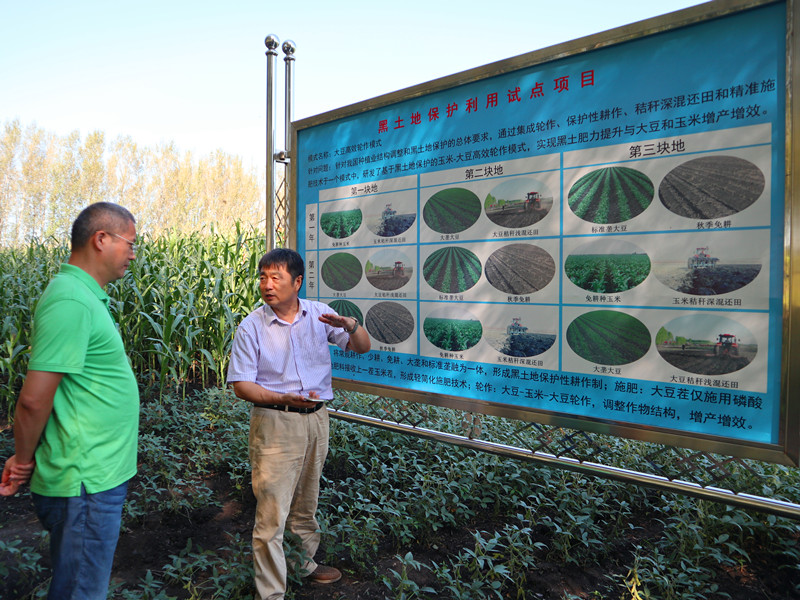 在海倫農(nóng)業(yè)生態(tài)實(shí)驗(yàn)站,韓曉增匯報(bào)了海倫站的建站歷史、多年來取得的業(yè)績和人才培養(yǎng)等情況,特別匯報(bào)了站內(nèi)設(shè)置長期定位試驗(yàn)的目的、獲得的研究成果以及在國家農(nóng)業(yè)科技需求中的重要貢獻(xiàn)等。周桔還實(shí)地了解了海倫市勝利村的農(nóng)業(yè)示范區(qū)內(nèi)的黑土保護(hù)和輪作休耕等技術(shù)模式的應(yīng)用情況,此技術(shù)理論是基于海倫站長期定位試驗(yàn)?zāi)毘鰜淼摹4蠖褂N專家李艷華重點(diǎn)匯報(bào)了我所培育的東生系列大豆品種的特點(diǎn)、成果轉(zhuǎn)化和推廣應(yīng)用情況。