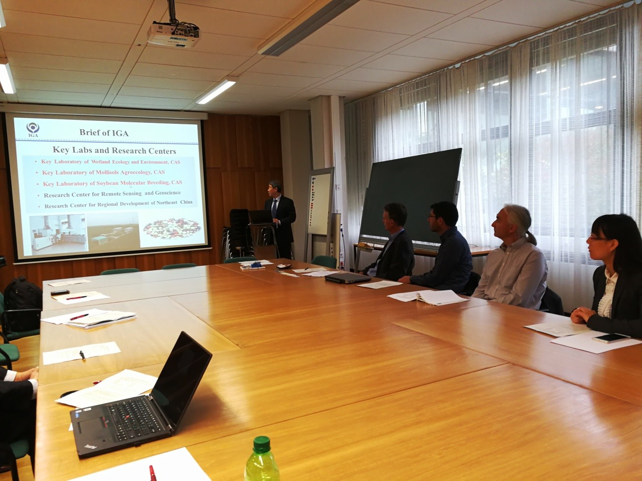 9月21日,代表團一行訪問了哥廷根大學林業(yè)科學學院,院長EdzoVeldkamp教授對我所代表團來訪表示了熱烈歡迎。何興元所長在座談會上做了關于“Research Program in IGA, CAS: An Overview”的報告,介紹了我所概況、學科領域、研究平臺及對外合作交流情況。林學院Kerstin Wiegand教授、Oliver Gailing教授、HolgerKreft教授、Peter Annigh?fer博士分別作了專題報告,雙方針對相關研究內容進行了廣泛而深入的探討。德方科學家對我所的研究平臺及研究內容非常感興趣;在開展有關研究領域、人才交流、項目申請、野外平臺建設等方面達成共識,計劃近期簽署科技合作協(xié)議。