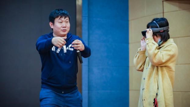 報(bào)告后,通過(guò)AR/MR Hololens 2混合現(xiàn)實(shí)技術(shù)的互動(dòng)展示,向公眾傳遞氣候變化與地球?yàn)?zāi)害的基本知識(shí),青少年觀眾從虛擬現(xiàn)實(shí)中體會(huì)到了宇宙的浩瀚,也認(rèn)識(shí)到了我們的地球猶如浩瀚海洋中的一葉扁舟,是我們?nèi)祟愇ㄒ坏募覉@,保護(hù)地球環(huán)境的意識(shí)必須深入心中,要盡自己的力量為環(huán)境做出積極的改變。