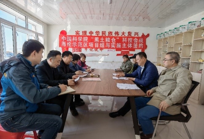 “黑土糧倉”科技會(huì)戰(zhàn)海倫示范區(qū)項(xiàng)目組與實(shí)施主體簽定技術(shù)服務(wù)協(xié)議