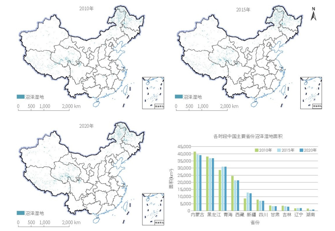 2010 年、2015 年和2020 年中國(guó)沼澤濕地空間分布