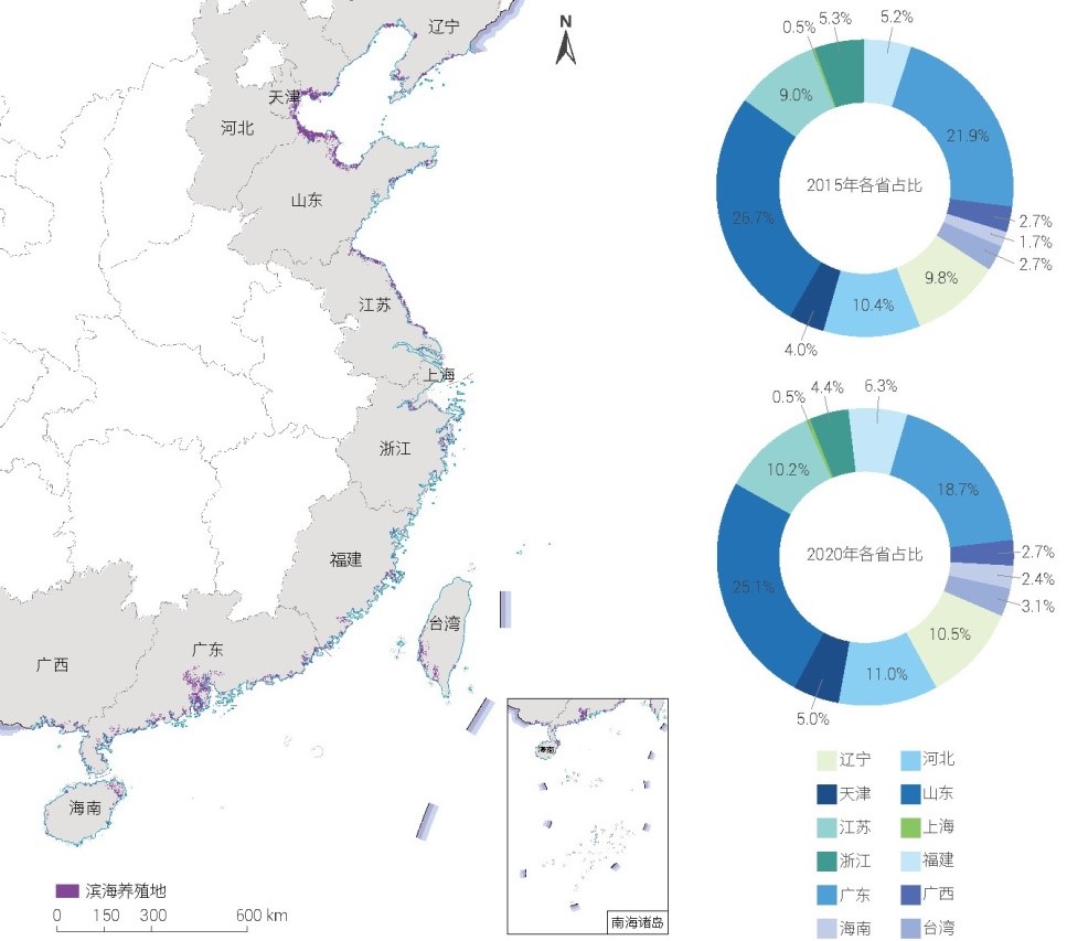 2020 年中國(guó)濱海養(yǎng)殖池空間分布格局