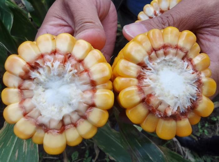 測產(chǎn)專家實地踏查了不同地塊的玉米長勢情況,并嚴格按照國家相關規(guī)范標準,選定測產(chǎn)樣地,對于玉米優(yōu)化變量施肥技術和玉米等高種植優(yōu)化施肥技術示范田均進行了實收測產(chǎn)及理論測產(chǎn),現(xiàn)場脫粒、去雜后,測定玉米水分含量,最后按玉米國標14%標準水折算成畝產(chǎn)量。