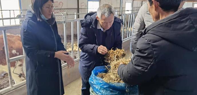 2021年12月14日到15日,吉林省畜牧局飼料飼草處處長張友良和關(guān)百軍一行到“黑土糧倉”科技會(huì)戰(zhàn)長春示范區(qū)公主嶺示范基地和長嶺草地農(nóng)牧生態(tài)研究站就菌酶協(xié)同發(fā)酵黃貯秸稈技術(shù)進(jìn)行現(xiàn)場調(diào)研,中國科學(xué)院東北地理與農(nóng)業(yè)生態(tài)研究所梁愛珍研究員、鐘榮珍研究員和陳國雙高級(jí)工程師陪同調(diào)研。