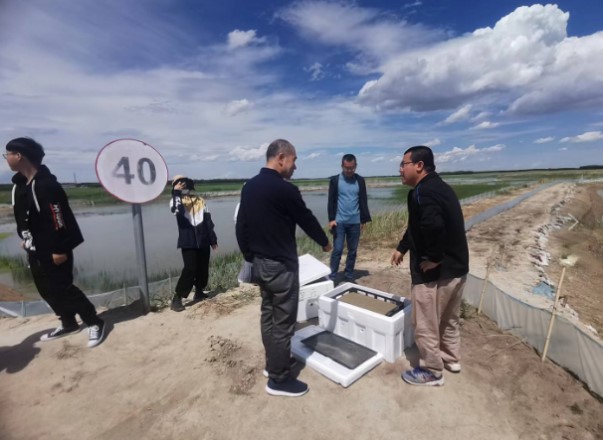在松嫩平原西部鹽堿濕地生態(tài)研究站濕地萬畝示范區(qū),調(diào)研組觀看了牛心套保生態(tài)保護與恢復宣教片,劉宏遠博士詳細介紹了“黑土糧倉”科技會戰(zhàn)牛心套保示范點的主要技術(shù)模式,任務設置及核心技術(shù)進展和成績,現(xiàn)場展示了鹽堿沼澤濕地合理利用關(guān)鍵技術(shù)1齡蟹種培育的大眼幼體堿水馴化及投放過程。李曉宇副研究員、張鳳偉副局長及王利民場長就中科院東北地理所與牛心套保葦場過去20年的重要合作進展和成果與調(diào)研組進行了交流。